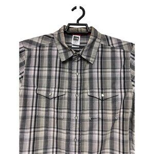 The North Face Plaid Pearl Snap Short Sleeve Shirt Green Grey Men's Size Medium