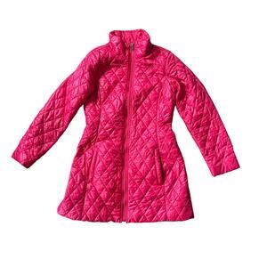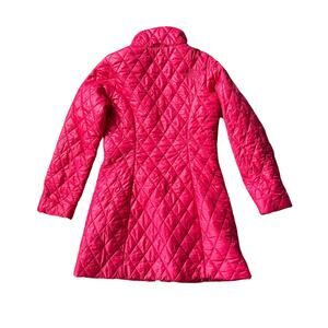 quilted, puffer, lightweight, pink, magenta, bright, barbie, barbiecore, coat, winter, warm, layer, layering, basic, basics, girly, diamond, stitching, quilting, long, longline