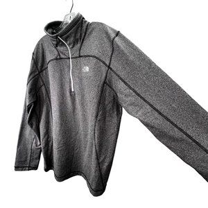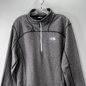 The North Face pullover 1/4 zip jacket shirt. Gray with mock neck, chest logo, and fleece lining. Size L.