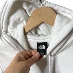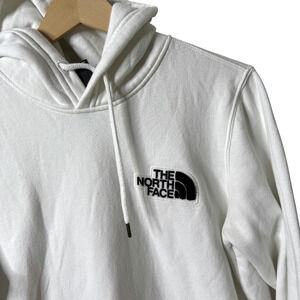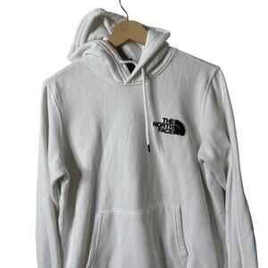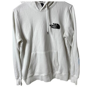 The North Face Pullover Hoodie Sweatshirt Drawstring Fleece White Logo Medium