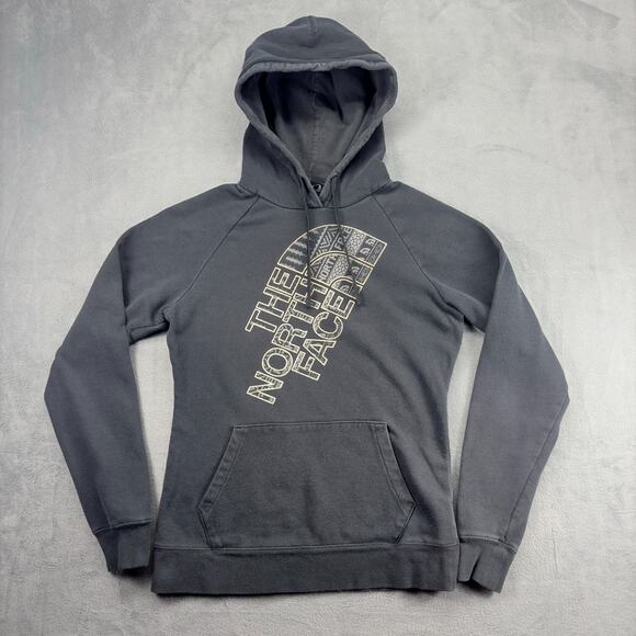 The North Face Pullover Hoodie Women's Medium Black Gold Logo Hooded Drawstring