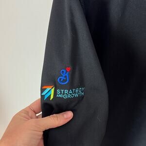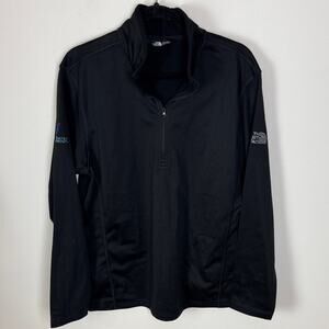 New With Tags The North Face Quarter Zip Pullover Sweater. This is a men's large. Black throughout. **This has corporate branding on it from General Mills Strategy and Growth on one sleeve.** North Face logo on the other sleeve. Lightweight and fleece lined. 100% polyester.