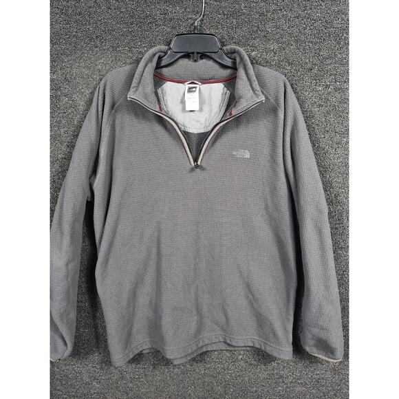 The North Face Pullover Mens Large Gray Fleece Quarter Zip Waffle Knit Sweater