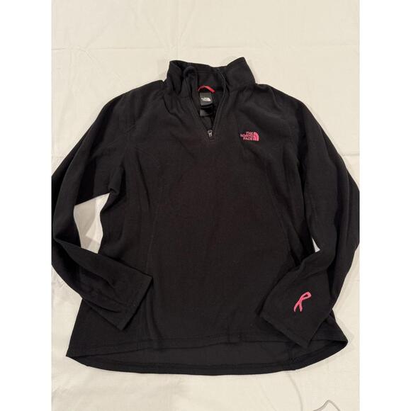 The North Face Pullover Womens Medium Black Fleece Quarter Zip Pink Ribbon