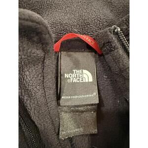 Details: Soft fleece fabric, quarter zip front with stand collar, shaped seams for a flattering fit, curved hem, "The North Face" interior neck tape with "Never Stop Exploring" branding.