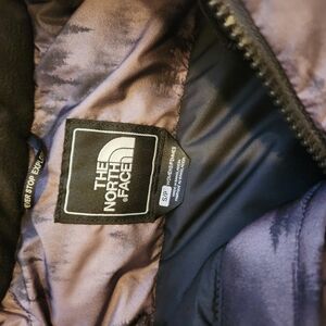 The North Face vest with a striking black and purple design. Ideal for outdoor adventures. Worn Once!