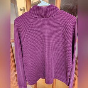 Stylish purple waffle knit pullover. Ideal for casual wear.