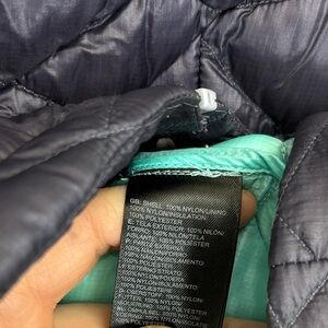 The North Face Purple and Blue Quilted Vest with Chevron Pattern