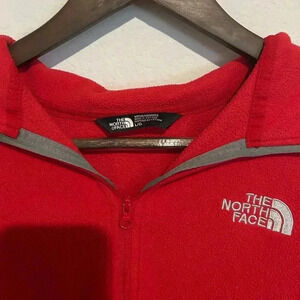 • Design Details: Quarter-zip closure, high collar for added warmth, classic North Face logo on chest, and soft fleece fabric.
