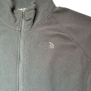The North Face Quarter Zip Pullover Jacket Fleece Black Women’s Size XL. Jacket has thumb holes and a front pocket.