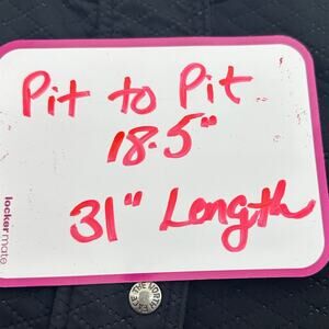 see pics for measurements ; polyester / elastane blend; interior drawstring at waist for adjustments; zippered pockets; full front zip and snap closure; great transition jacket from winter to spring