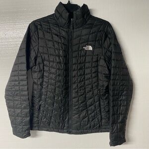 The North Face Quilted Jacket Small Black Full Zip Theroball Mock Neck