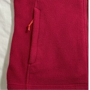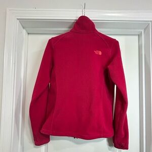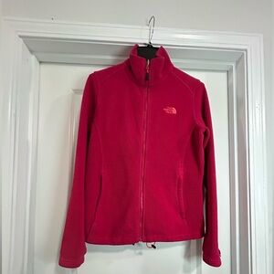 Warm raspberry jacket with full zip. High collar design. Signature logo on chest. and back.