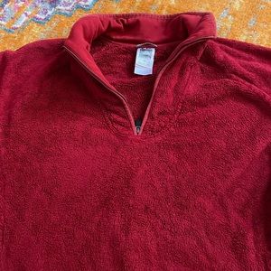 Cozy fleece pullover. Half-zip design. Perfect for layering.