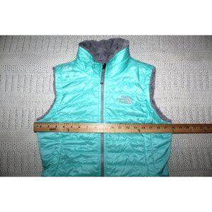The North Face Reversible Girls Blue & Grey Vest Puffer Jacket Size LG Fluffy