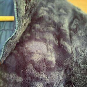 See photo - burn mark on one side - could wear fuzzy side out and wouldn’t notice