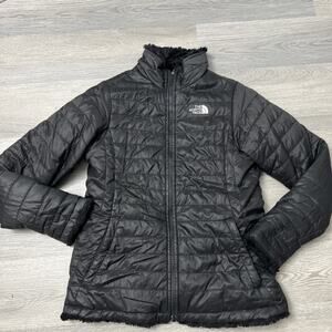 The North Face Reversible Mossbud Swirl Jacket Girls XL Black Puffer Sherpa