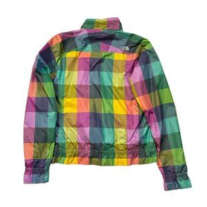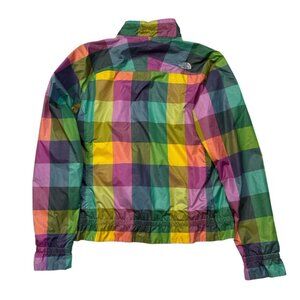 The North Face Shell Jacket Womens Size L Plaid Checker Rainbow Windbreaker Zip Good gently pre-owned condition