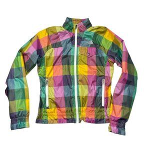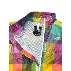 *The North Face Shell Jacket Womens Size L Plaid Checker Rainbow Windbreaker Zip