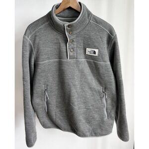 The North Face Sherpa Patrol 1/4 Snap Pullover Mens Large Fleece Lined Gray Wool