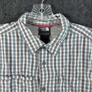 The North Face Shirt Men’s Medium Blue Brown Plaid Button Down Short Sleeve