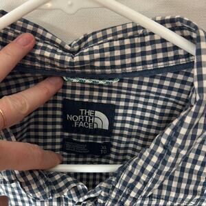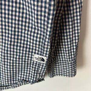 Gently Used The North Face Button Down Shirt. This is a men's XL. Blue and white gingham pattern throughout. Front pocket. The North Face logo tag on the side waist. 100% cotton.