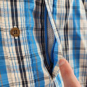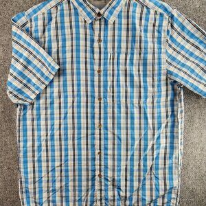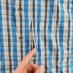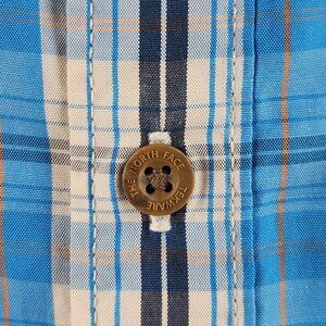 The North Face Short Sleeve Blue Plaid Outdoors Hiking Button Up Shirt Medium