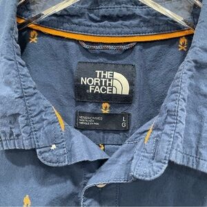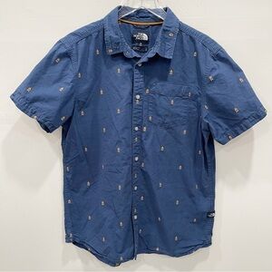 The North Face Short Sleeve Button Down Shirt Blue Men’s Large Bonfire Campfire