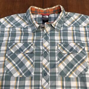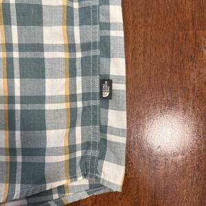 The North Face Short Sleeve Button Up Green White Yellow Plaid Men's Size Large