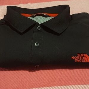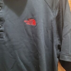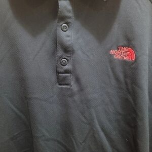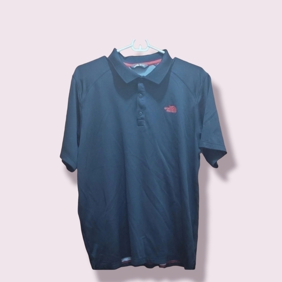 Men's Black with red logo short sleeve The NorthFace Hydry Polo shirt Size large in good preowned Condition