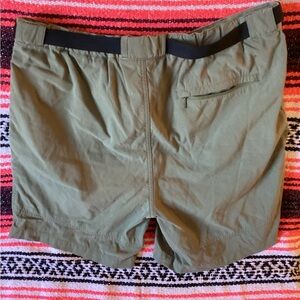 The North Face Shorts Mens Large Green Cargo Zip Pockets Outdoor Belted Stretch-18” elastic back waist-6” inseam-H4