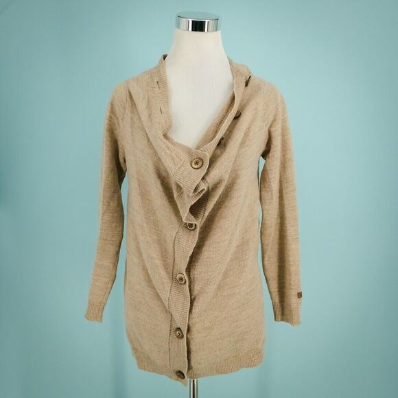 The North Face Size Small S Tan Beige Wool Adjustable Button Front Down Long Sleeve Knit Cardigan Sweater