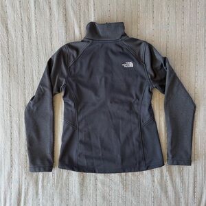 Stylish full zip black jacket by The North Face with smooth exterior and soft, warm interior. Perfect for outdoor activities in fall or mild winter.