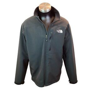 north face jacket, outdoor jacket, warm winter jacket, XL north face, adjustable cuffs, chest pocket jacket, cold weather jacket, durable jacket, mens softshell jacket, black full zip jacket, polyester blend jacket, machine washable jacket, stylish softshell jacket
