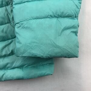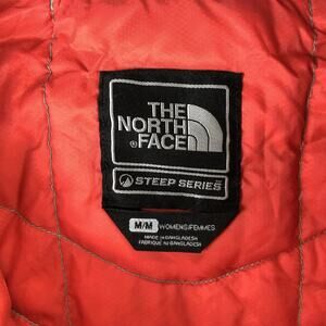 Up for sale is a used The North Face Steep Series Womens Medium Green Hooded Goose Down Puffer Jacket. Jacket is in overall good condition without any rips or tears. There is a light stain on back right side of jacket.