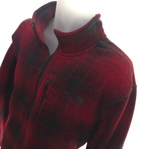 The North Face Sweater Mens XXL Red Buffalo Plaid 1/4 Zip Gordon Lyons Fleece 2X