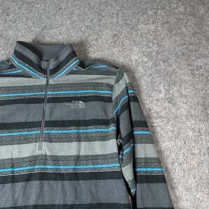 The North Face Sweatshirt Men’s M Gray Striped 1/4 Zip Pullover Fleece Outdoors