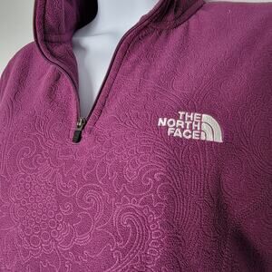 North Face pullover, TKA 100 fleece, embossed fleece jacket, purple quarter zip, outdoor hiking layer, women’s North Face fleece, camping gear, Y2K outdoorwear, cozy loungewear, trail essentials