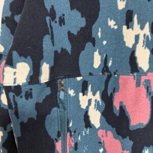 Color/Print: Multicolor abstract print (teal/pink/ivory on deep teal)