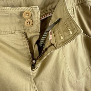 Excellent preowned condition. Tan mid rise lightweight hiking capris. Zipper/double button closure. Open pockets front & back & button flap pockets on outer legs. Cinching cord on leg hem. Cotton/elastane material. approx. measurements: Waist 32", inseam 20", rise 8.5". Size 10.