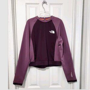 The North Face Purple Tekware FutureFleece Mix Semi-Cropped Sweatshirt Women's Size Large. Pullover with 1/4 zip at back of neck.