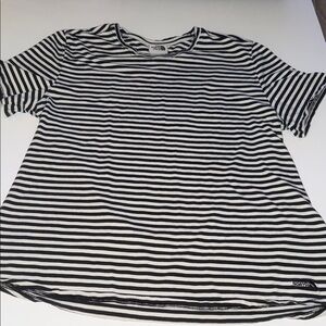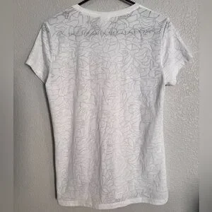 Like new. Crisp white. Scoop neck. Classic logo. Subtle floral pattern. Soft. Flattering. Feminine. Great layering piece.