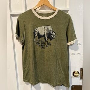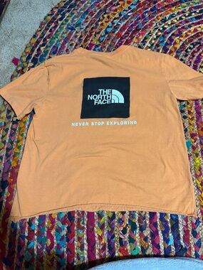 casual everyday tee, vintage north face vibe, mountain lifestyle, sporty casual, normcore style, utility fashion, neutral outdoor style, laid back street style, basic streetwear tee