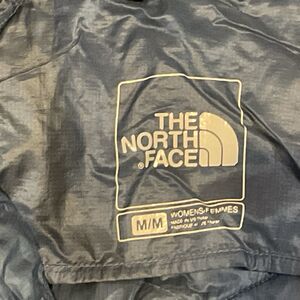 This is a nice slate blue North Face puffer jacket. It is in good used condition. No major flaws to note, but it does show minimal wear. The polyester filler has clumped a little. It has good features: lightweight, front zippered pockets, fill zip, and embroidered logo on the front and back. See photos for measurements.