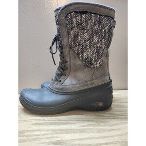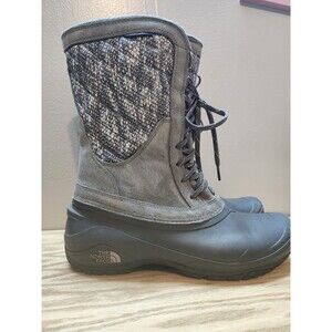 The North Face Thermoball Gray Quilted Logo LaceUp Waterproof Boots Size 10.5