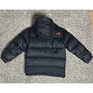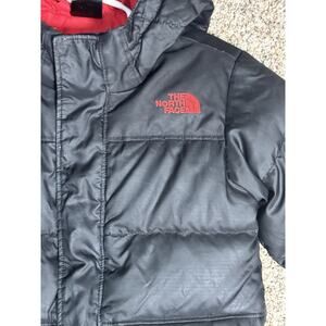 The North Face Toddler 3T 650 Down Puffer Jacket Black Red Hooded Winter Coat