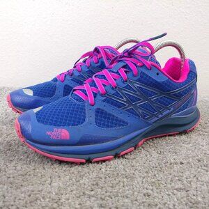 The North Face Ultra Cardiac Womens 7.5 Running Shoes Vibram Soles Blue Pink