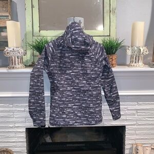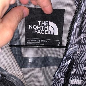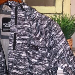 The North Face Venture 2 Black White Printed Women’s Waterproof Jacket Size Small. Hooded, zip and Velcro closure. Like new. No flaws. Lining is pristine