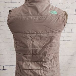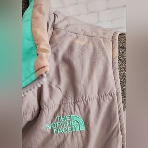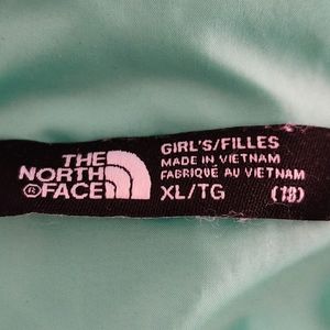 The North Face Grey outer vest with teal lining. Girls size XL. Gently worn with slight discoloration on left shoulder.