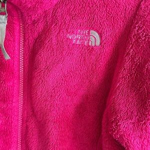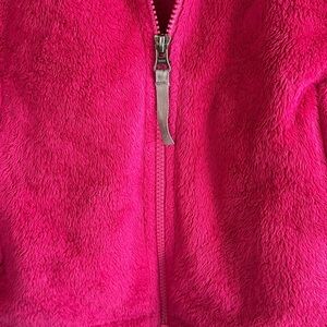 Bright pink fleece front full zip coat jacket by The North Face. Soft and warm. Ideal for chilly days. Great condition!